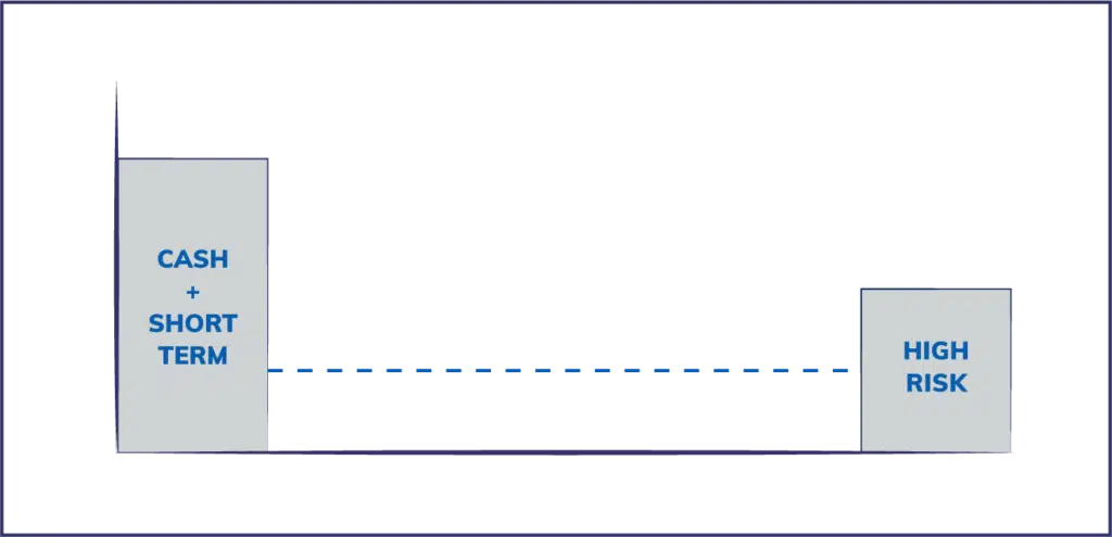 A barbell strategy on the other hand basically involves investing on the ends of the risk curve and avoiding the middle, and looks something like the below graphic.