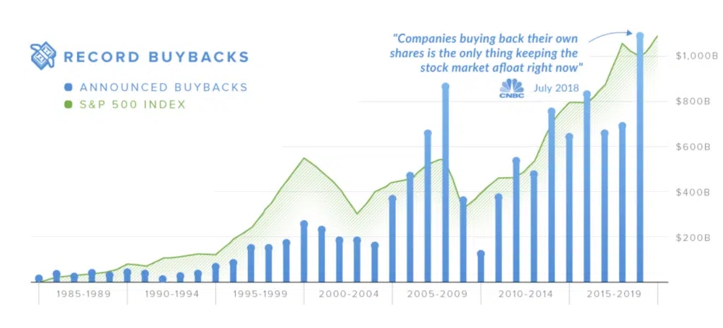 Another example that we are seeing play out now is corporate stock buybacks. Low interest rates have incentivized CEO of companies to issue debt to buy back shares to boost stock prices.