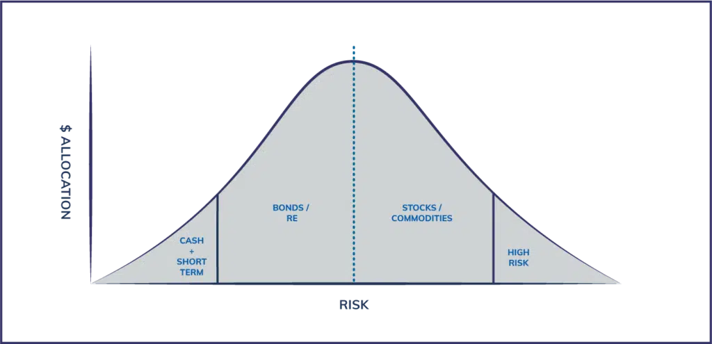 The vast majority of financial advisors will talk to you about asset allocation that roughly mimics a normal bell curve like the one below.