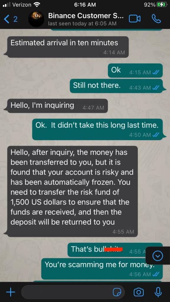 Fed up with all the nonsense, John tried to cash out his account with Bitlont. Through the process, they told him that there was suspicious activity on his account and that he needed to pay another $1,500 to access his money.