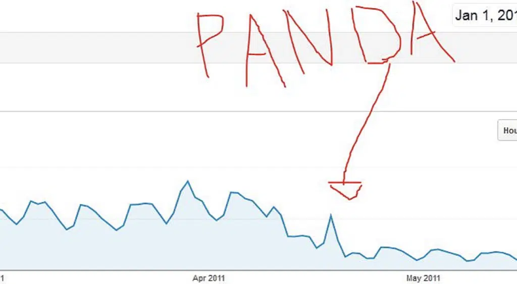I still remember many years ago when Google did a major algorithm update that whacked my business overnight. This update took a bunch of keywords I was ranking for and basically took them away. Where I had been on the first page of Google for some of them, I was now ranking on the 2nd or 3rd page instead. That’s not good. Here’s how bad the Google Panda update looked for my site’s traffic: