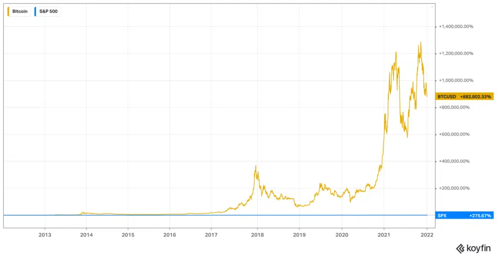Bitcoin has only been around for over thirteen years. But during that time, it has become the investment story of the 21st century. Seriously, no other investment has come close to matching its price performance. People are literally becoming millionaires after making just small investments.