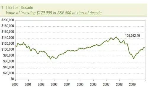 It depends on how consistently you saved and tactically you invested. As you can see in [Chart 1] with $120,000 invested in the S&P 500 at the beginning of the decade, it was only worth $109,082 (including dividends) 10 years later, for a loss of about $11,000.