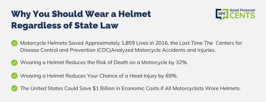 While the information above can help you understand the legal requirements for motorcycle helmets in various states, you may want to consider wearing one whether state law mandates it or not.