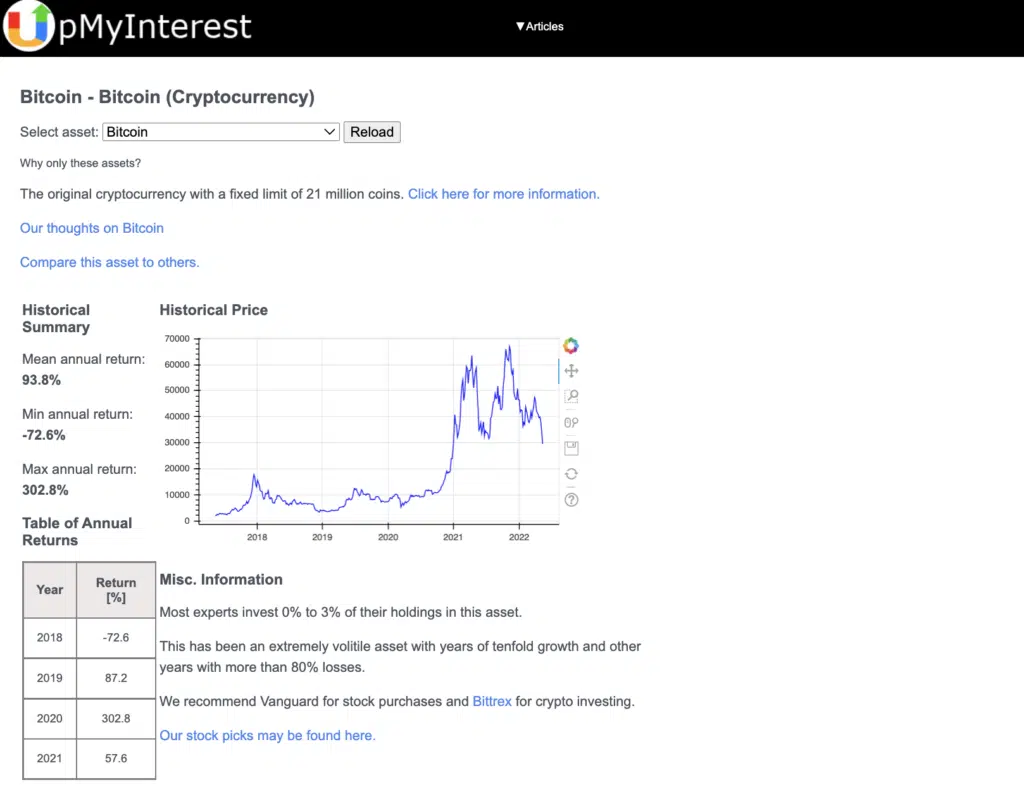 For example, if you’re looking to save money to make a down payment on a house, or to retire early, an investment in Bitcoin that drops more than 72% in the first year isn’t going to get the job done.