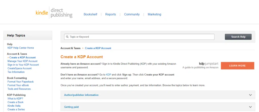 Once you have a written, formatted book and a cover, it’s time to upload them both to Amazon. To do this, you must have a Kindle Direct Publishing (KDP) account. If you already have an Amazon account, this will be a breeze. It’s absolutely free and they walk you through the steps.